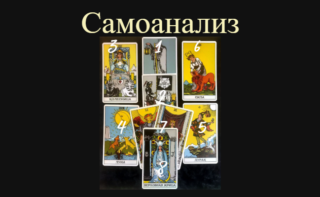 Расклад "Самоанализ" делается на старших арканах. Относится к психологическим раскладам. Не стоит его делать чаще, чем раз в полгода/год.
