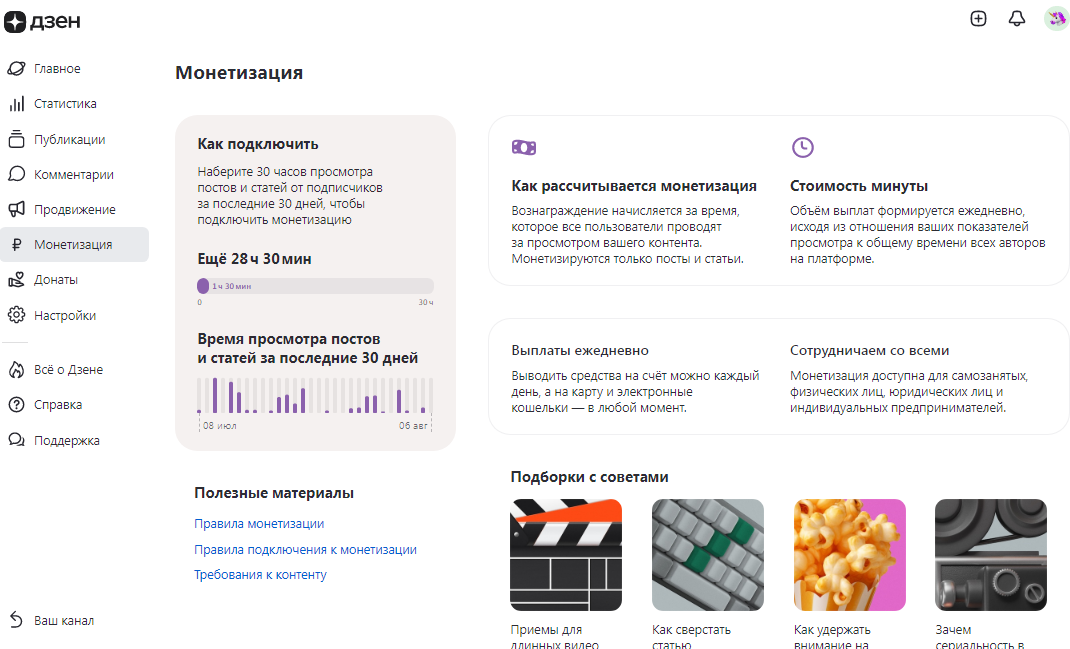 Одними статьями на монетизацию на Дзен не насобирать.
