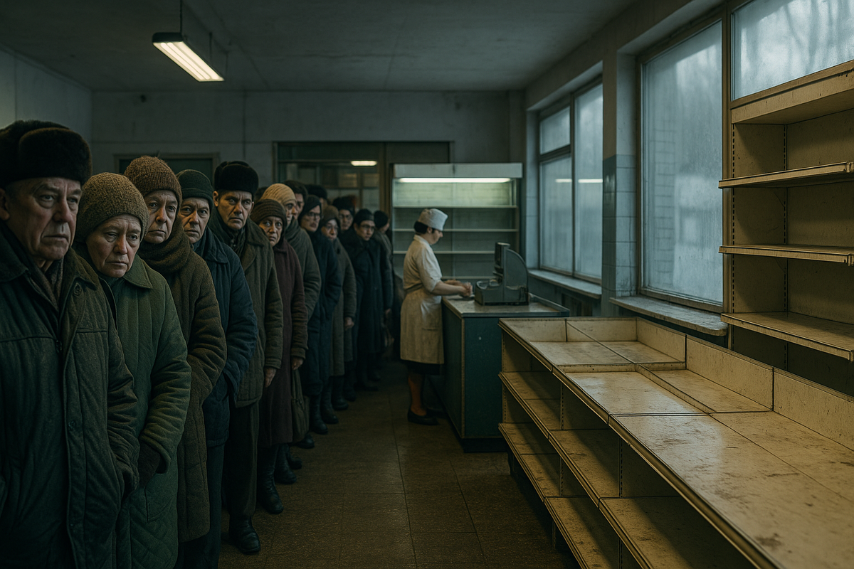 1988-й также принёс 1000-летие Крещения Руси — событие, невозможное ещё пять лет назад в атеистическом государстве. Спорт успевал за воздухом перемен: футболисты играли в финале Евро-88, хоккеист Пряхин уехал в НХЛ — не «по указанию», а по контракту. Но за яркой витриной накапливалась ржавчина. Дефицит стал системным, фискальные «ловушки» затягивались, ларьки кооператоров не могли накормить страну. К 1990-му — карточки, пустые прилавки, длинные списки на «километровую» колбасу. Свобода говорилась, пелась, снималась — а в холодильнике пустело.