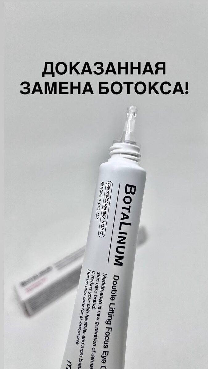 ДОКАЗАННАЯ ЗАМЕНА БОТОКСА! Крем для глаз с ботулином Meditime Botalinum Double Lifting Focus Eye Cream✨ В состав входит запатентованный компонент БОТУЛИН, который создает эффект ботокса, он БЛОКИРУЕТ передачу нервных импульсов к мышцам и тем самым сокращает морщины. РЕШЕНИЕ ПРОБЛЕМ: - увлажняет, питает, освежает кожу под глазами - повышает упругость кожи, подтягивает ее - предотвращает появление дряблости - осветляет кожу, борется с пигментацией и постакне - укрепляет гидролипидную мантию, имеет антикуперозные свойства - расслабляет мышцы, моделирует овал лица - омолаживает, борется с признаками старения, регенерируют и заживляют кожу - увеличивает объем жировых клеток в коже, уплотняет и разглаживает кожу - увлажняет и питает кожу - ускоряет обменные процессы в коже, подтягивает кожу, делает её упругой - увлажняет и выравнивает рельеф, удерживает влагу в коже, дарит коже сияние и ухоженный вид Остались вопросы? Пишите нам🫶🏼 —————————————— Ваша Катя🤍 Жду Вас по адресу г. Анапа
