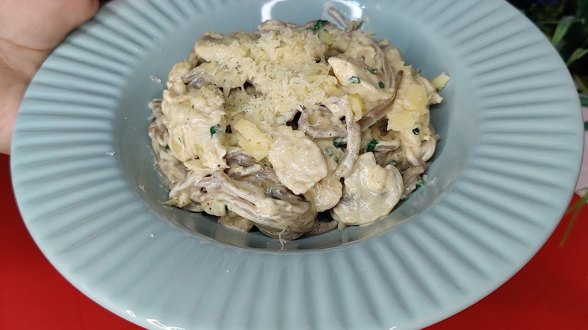 Рецепт. Куриная грудка -300 гр. Лук -1 шт. Чеснок -3 зуб. Грибы - 50-70 гр. Петрушка - 5 гр. Лапша гречневая без глютена - 200-300 гр Сливки -200 мл. Масло растительное -1 ст.л. Сливочное масло -1 ст.л. Соль по вкусу Красный молотый перец по вкусу Черный молотый перец по вкусу. Сыр -10-20 гр. На небольшом количестве масла обжариваем куриную грудку. Затем убираем грудку, в сковороду добавляем сливочное масло и обжариваем чеснок, лук и грибы. После этого добавляем обжаренную курицу. Затем вливаем сливки, перемешиваем и добавляем немного воды. Добавляем специи и соль. Отвариваем гречневую лапшу. Отваренную лапшу перекладываем в сковороду и всё хорошо перемешиваем. Добавляем петрушку, посыпаем тёртым сыром. Приятного аппетита! Подробный рецепт на ютуб канале