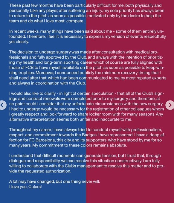 🚨🔥 «Любое альтернативное толкование кажется мне несправедливым и неточным». Марк-Андре тер Стеген сделал заявление в соцсетях