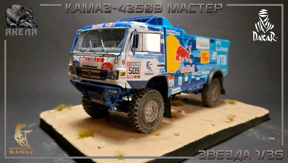 Представляю вашему вниманию обзор готовой модели гоночного автомобиля КамАЗ-43509 от российского производителя «Звезда». Модель представляет собой копию грузовика легендарной команды «Камаз-Мастер». Она выполнена в масштабе 1/35 с бортовым номером 509, соответствующим автомобилю, участвовавшему в гонке «Дакар-2022» в Саудовской Аравии. По итогам соревнований экипаж № 509 в составе пилота Андрея Каргинова, штурмана Андрея Мокеева и механика Ивана Малькова занял четвертое место.