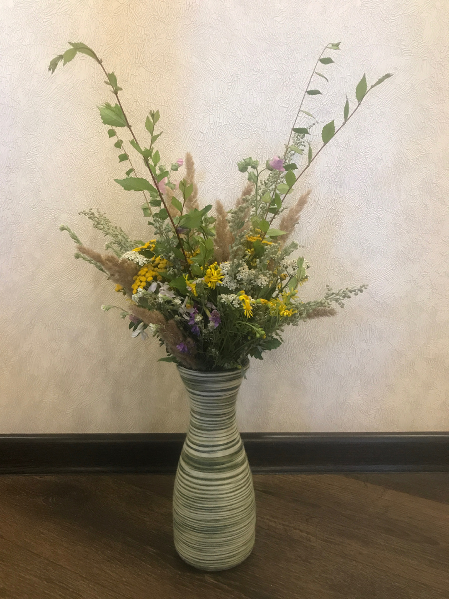 Очаровательная магия полевых цветов не прекращает удивлять меня и захватывать в свой плен. 🥰 Руки тянутся за ножницами, а ноги несут на солнечную поляну. Хочется видеть эту прелесть не только на улице, но и дома. Известные и не очень цветы один за одним оказываются в разношёрстном, но очень привлекательном букете. Удивительный факт: цветы одновременно нежные и яркие. 😍 Холодные и тёплые оттенки не выталкивают друг друга из букета, они принимают друг друга и тем самым подчёркивают индивидуальную миловидность каждой веточки. Будучи очень разными, все вместе они - шикарное украшение интерьера, рассматривать которое можно долго. 🤩 Полынь, и та умудрилась занять законное место в травяном ассорти. На улице она активно проявляла свой дерзкий нрав, издавая характерный только для неё аромат, а дома присмирела. 😂 Чтобы почувствовать её запах, нужно склонить голову и внимательно прислушаться. Естественность природных красок меня всегда привлекала и вдохновляла. Некоторые растения имеют краси