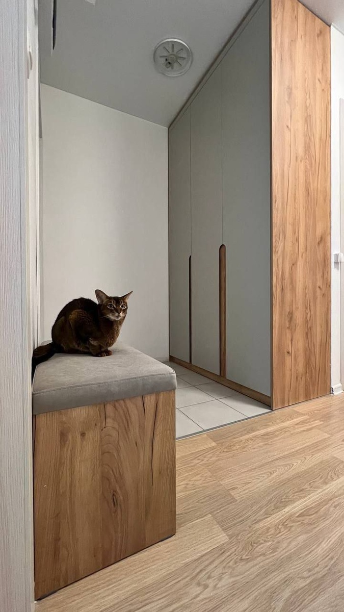 Никто не устоял 😽 Сегодня заглянем в квартиру нашего заказчика, где нас встречает стильная прихожая! Вся мебель здесь выполнена в модном скандинавском стиле ✔️Основной материал - ЛДСП «Дуб»: тёплая текстура и скандинавский уют. ✔️Фасады из коллекции Грейт, окрашенные по стандарту RAL - современно и со вкусом. ✔️Интегрированные ручки и полка в виде сот - детали, которые делают интерьер особенным. И да, даже котик заказчика тоже в восторге 🐾 Салоны | Акции | Рассчитать проект 🔸 Арлайн - мебель по вашему вкусу!