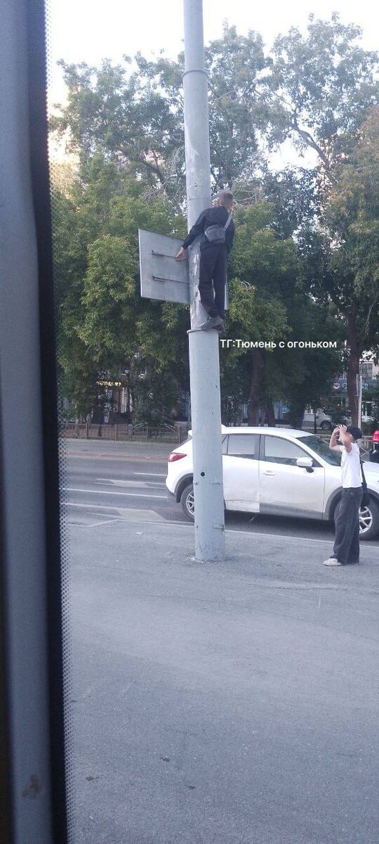 Подростки залазят на дорожные знаки. Перекрёсток Ленина, Мориса Тореза.