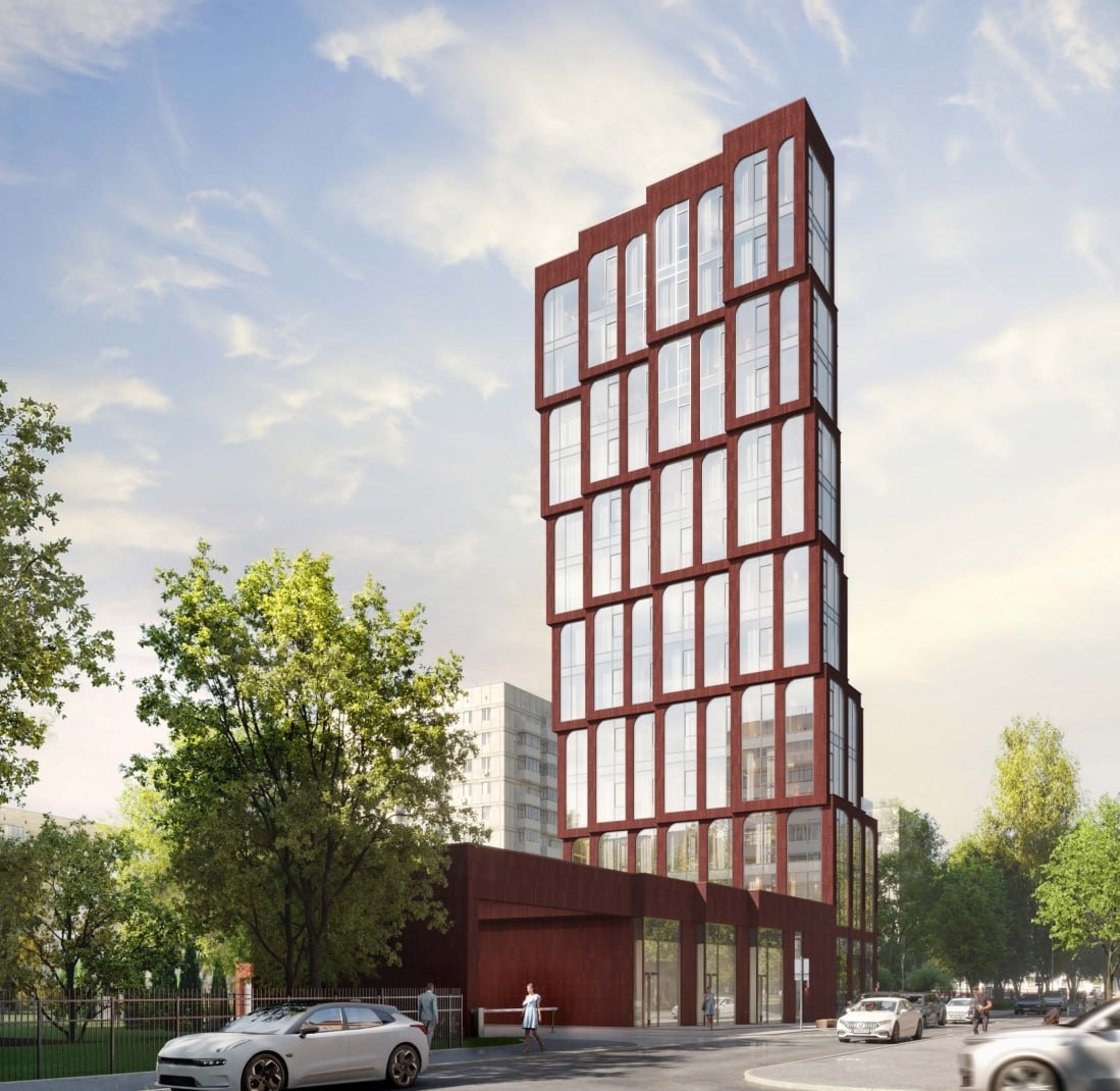 За проект отвечает девелопер Ziggurat совместно с архитектурным бюро ABG. Это будет 13-этажный клубный дом премиум-класса с фасадами, выполненными в кирпичных оттенках. Визуалы пока скорее «рабочие», но уже понятно, что здание будет выглядеть строго и статусно.