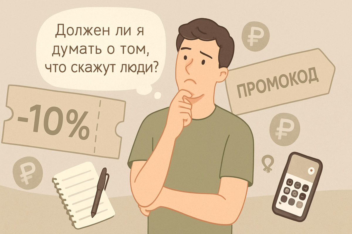 Если вы выросли в СССР или в 90-е, то наверняка помните: просить скидку считалось почти позором. Люди шёпотом обсуждали, кто «выклянчил» себе дешевле, и старались делать вид, что им всё по карману. Но времена изменились: скидка — это не признак бедности, а способ тратить с умом. Давайте разберём, почему у нас в голове до сих пор живёт этот барьер и как его убрать. Скидка — это инструмент, а не милостыня. Магазины и сервисы специально закладывают в цену запас на акции и торг. Не пользоваться этим — всё равно что выкидывать часть зарплаты в мусорку. 1. Меняйте внутренний сценарий