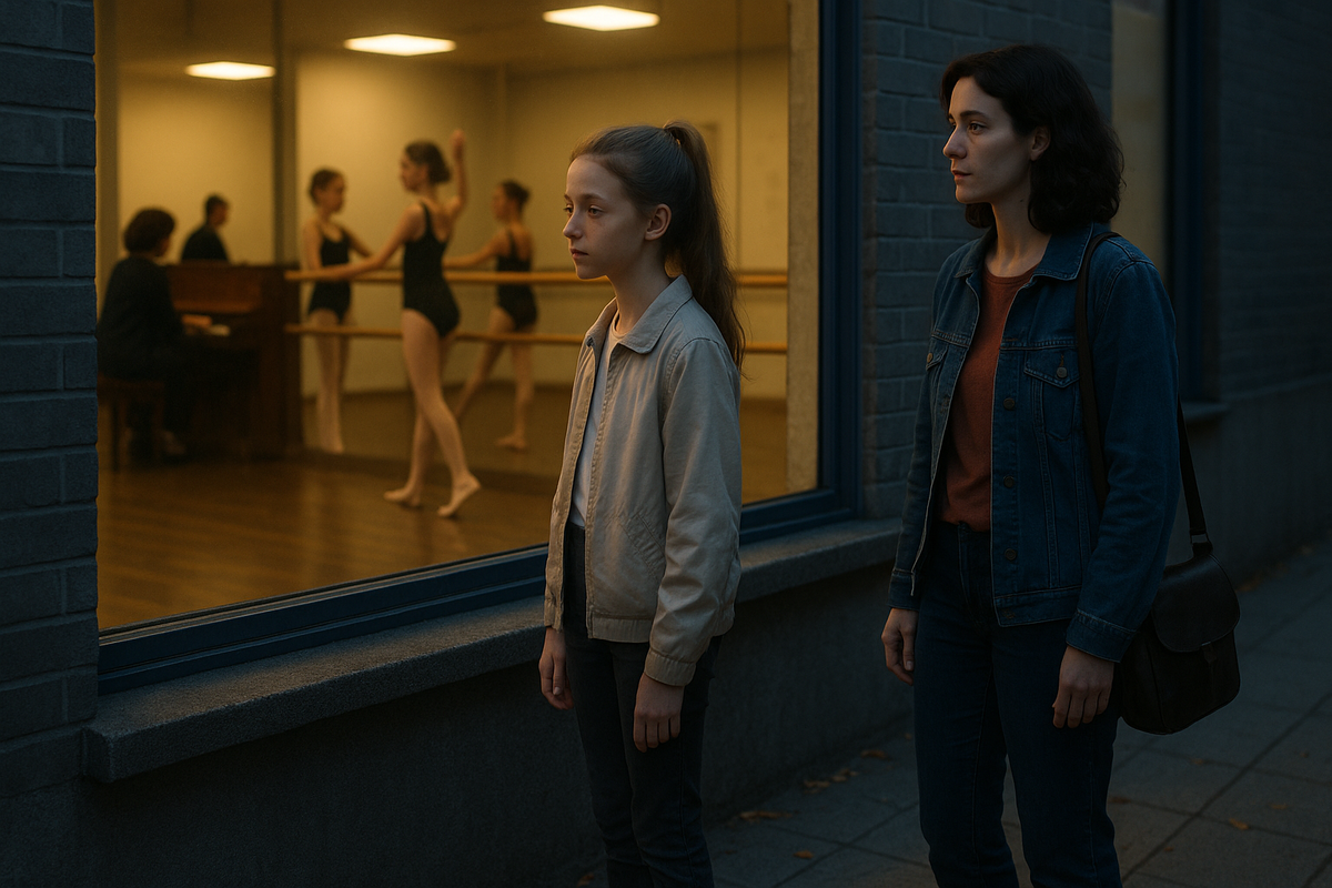 Музыка за стеной зазвенела, как льдинки в стакане. «Раз, два... вытянуть носок... молодец!» — доносился голос педагога. На середине занятия дверь приоткрылась шире, и она шёпотом, но уже с улыбкой:
