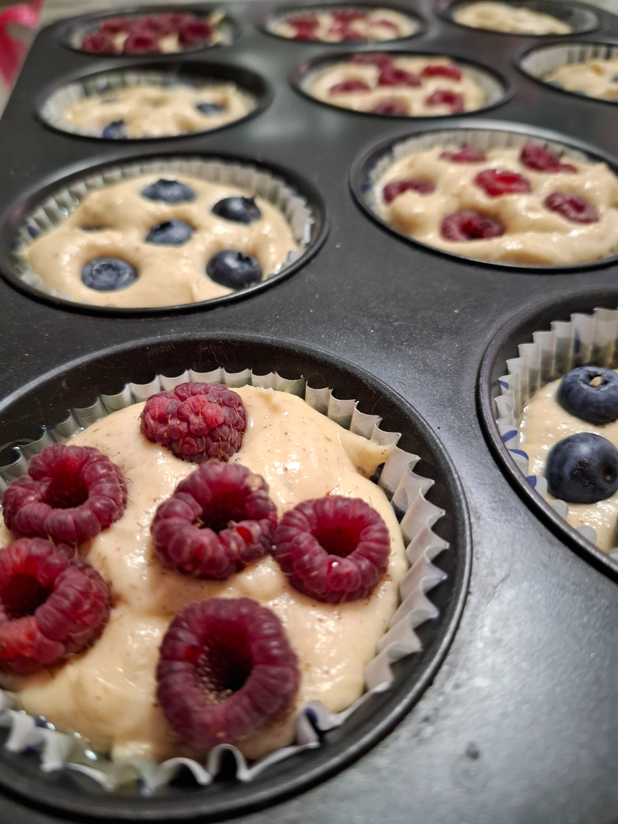 Готовим летние, ароматные кексы или маффины, как ни назови, это прекрасно! Середина августа – время, когда лето клонится к закату, но еще не отдает свои позиции осени. Это период, когда можно насладиться теплом, но уже чувствуется легкая грусть и приближение перемен в природе. <<Удиви меня, август!... Мелодией лунного танца, Ароматом цветов, полинявшими ситцами троп...>> Ловите летние рецепты с ягодами 😁👌 Ингредиенты: Сметана 150гр Яйца 3шт Сахар 1/2стакана Мука 300-350гр Соль-щепотка Масло сливочное 100гр Ванилин и разрыхлитель-1пак. Специи по вкусу. Ягоды-малина и голубика по 70гр Вкус лета - это сладкий аромат спелой малины и голубики! Подготовим формочки для запекания. Маффины голубикой получаются особенно вкусными, поскольку её легкая кислинка отлично оттеняет сладковатое тесто. Сразу после духовки маффины получаются с корочкой. Чтобы убрать ее, просто положите остывшую выпечку в пищевой пакет на пару часов. Эту прекрасную выпечку можно подать 😁👌даже на праздничный стол!