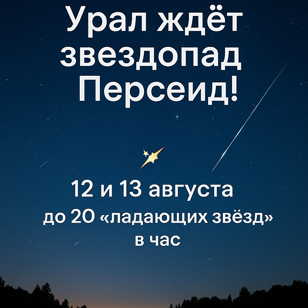 🌠 Урал ждёт звездопад Персеид! Жителей Урала в ближайшие дни ждёт настоящее небесное шоу. В тёмное время суток 12 и 13 августа небо засияет десятками ярких вспышек — это метеорный поток Персеиды, способный подарить до 20 «падающих звёзд» в час. Астрономы отмечают: в этом году наблюдение немного осложнит свет Луны, который скроет самые слабые метеоры. Но самые яркие вспышки будут заметны невооружённым глазом. 📍 Как наблюдать лучше всего: уезжайте подальше от городских огней; выбирайте места с открытым горизонтом; захватите тёплую одежду и терпение — ведь иногда на самую красивую «звезду» нужно подождать. Персеиды — один из самых красивых звездопадов года, и этот август подарит всем романтикам и любителям космоса незабываемое зрелище. Главное — загадать желание, когда звезда пронзит небо. Источник