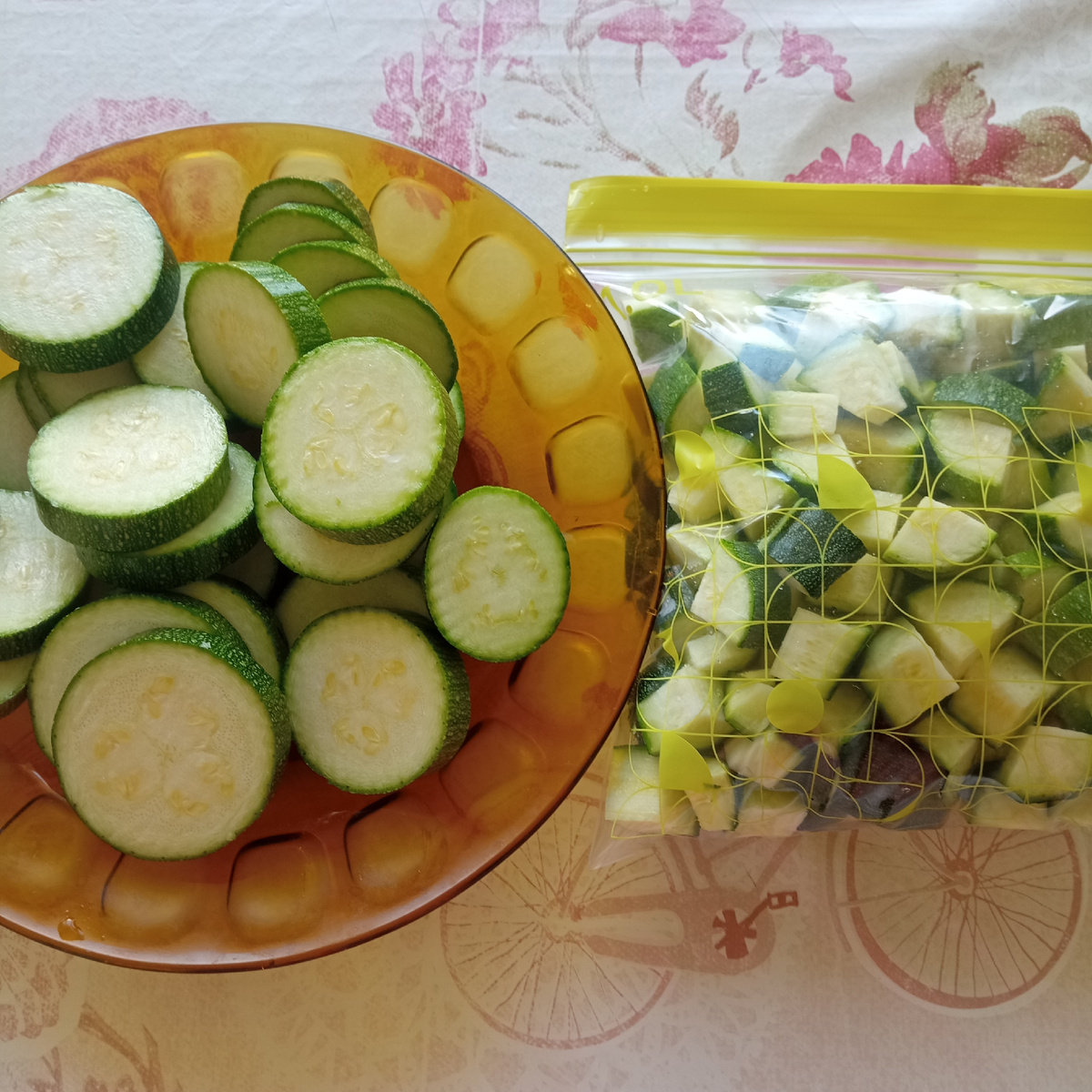 После завтрака я, не торопясь, помня о том, что сегодня магнитные бури, стала заниматься бытовыми делами. Наконец-то помыла и порезала кабачки. Самые маленькие порезала кубиками и положила в заморозку, шайбами оставила для запекания.