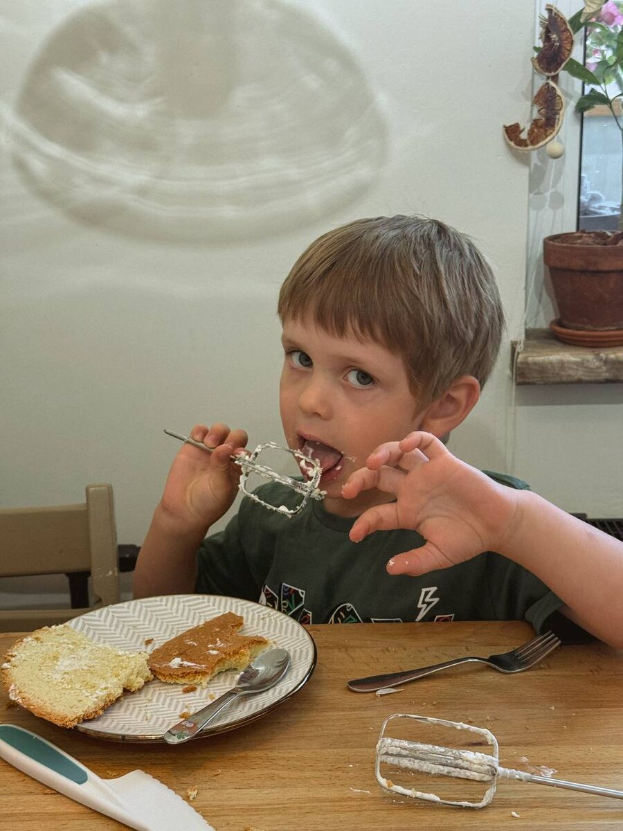 Завтра мы едем на день рождения к друзьям и, естественно, не сделать торт для маленькой именинницы я просто не могла 💜 К своим почти уже 4 годам человек мастерски уже умеет собирать себе тортик из обрезков😅 А вот с Колей своим тортиком самодельным делиться отказался. Цитата: «Папа, завтра мы поедем к Вике на день рождения, там торт и попробуешь»😅