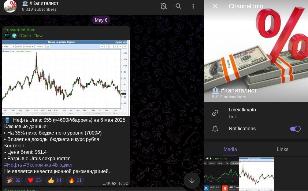 Капиталист (Cfkrypto) — это Telegram-канал, где публикуется контент, связанный с инвестициями, экономическими триггерами и рыночными движениями. Владелец позиционирует себя как аналитика с хорошей базой знаний. Но действительно ли автор разбирается в теме или просто пересказывает чужую аналитику? Мы изучили канал и готовы поделиться объективным обзором. ✅ Кстати, проверенный метод заработка здесь ◀️ На канале выходят посты, посвящённые следующим темам: На первый взгляд — материал действительно может быть интересен. Однако возникает вопрос: откуда берутся данные? 🔍 В одном из первых постов автор публикует анализ рынка нефти и указывает стоимость марки URALS. Проверка показала, что этот же текст ранее был размещён в другом паблике — Cach_Flow. Это наводит на мысль о копировании чужого контента. 📉 Несмотря на аналитический формат, подтверждений компетентности автора нет: ни имени, ни фамилии, ни даже инициалов. Аккредитации в инвестиционной сфере тоже не заявлено. 📉 Отсутствует информ
