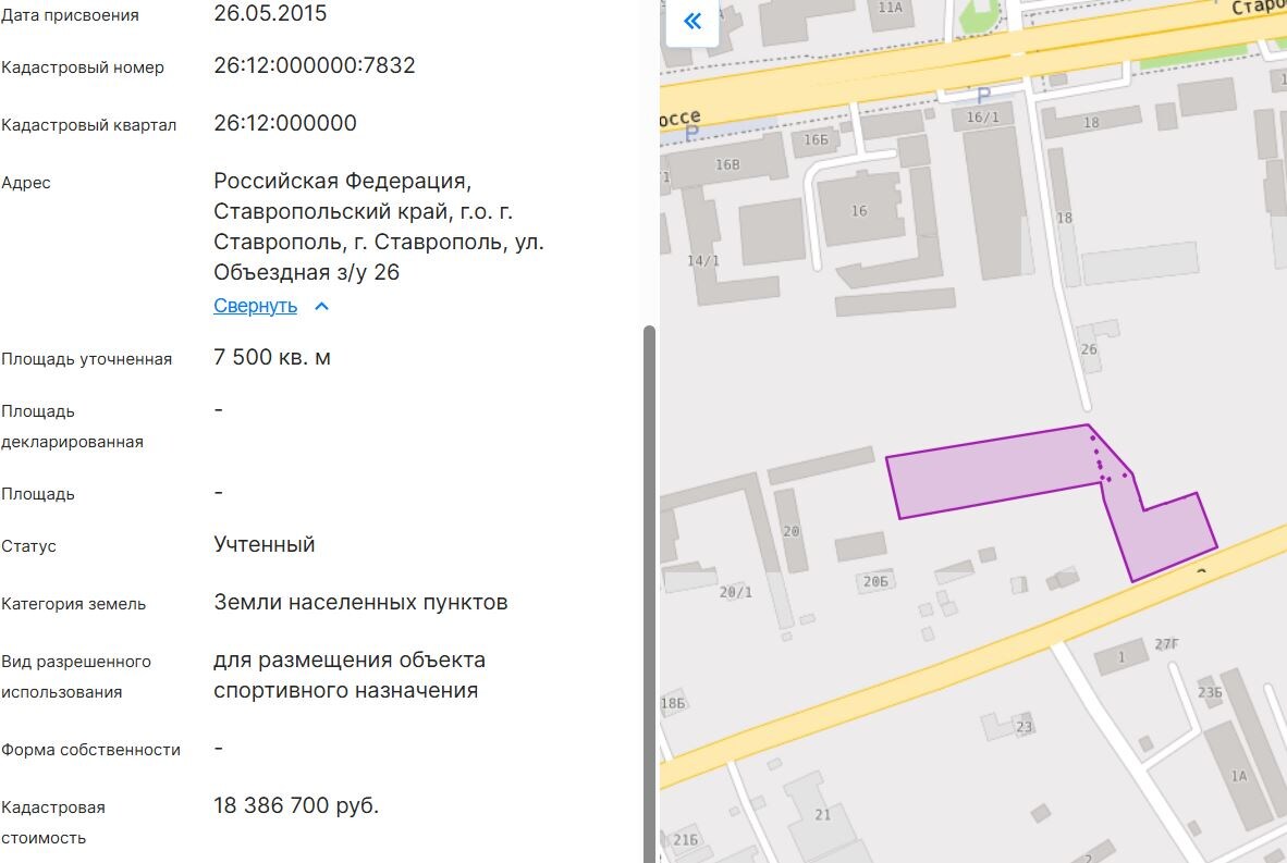 скриншот из публичной кадастровой карты