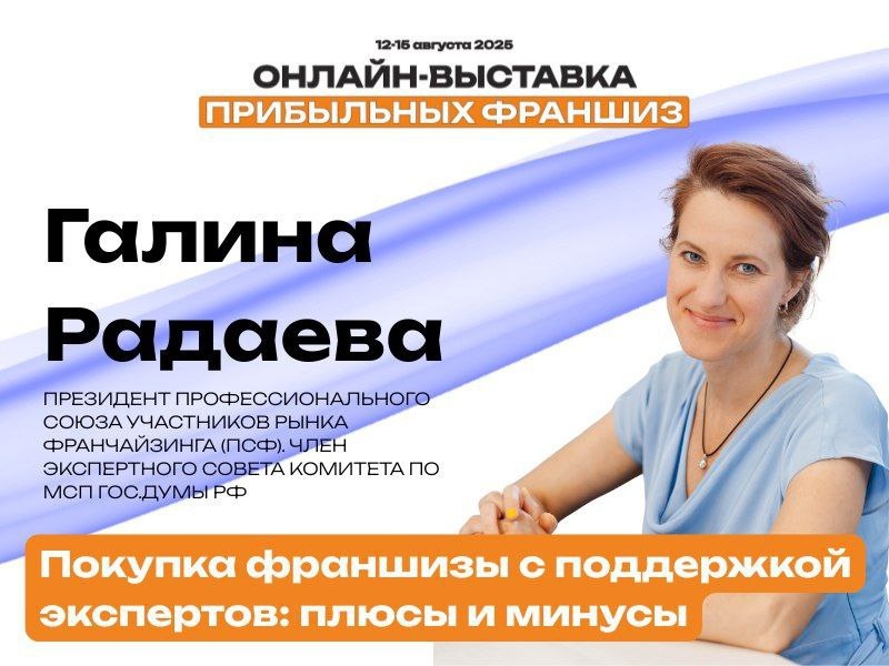 В новостях мы ранее писали о новой онлайн выставке от ФранчЭкспо. Каждый покупать франшизы, будь то предприниматель, берущий ведение бизнеса на себя, или инвестор, отдающий операционку под УК Бренда, желает прибыль и целесообразностть своих вложений - денег, времени, внимания. Поэтому от ПСФ будет тема "Покупка франшизы с поддержкой экспертов: плюсы и минусы", выступление 12 августа в 14.00 * Кому и когда нужна Школа Франчайзи от ПСФ * Отраслевые треки для начинающих во франшизе * Мультифранчайзинг как тренд развития рынка на годы вперед И помните, ответственность за принятие решение о входе в партнерские отношении лежит на обеих сторонах. Послушать франчайзеров, прочувствать всю искренность и любовь к их делу, услышать правду об успехах и неудачах - рекомендуем, это будет полезно. И спасибо коллегам за то, что вкладывают ресурсы для новых форматов, и вместе мы все же делаем рынок франшиз качественным и доступным. Вход для слушателей свободный на всю программу, жмите на кнопку З
