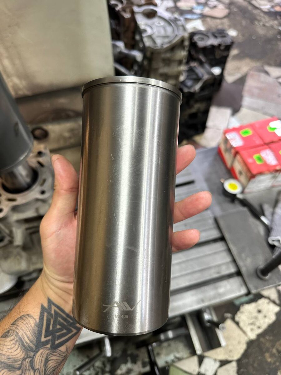 В ответ на пост Гильзовка поло 1.4 Продолжение. Пришла гильза, фото 1. Начал под нее растачивать, в итоге вскрылась родная гильза. На фото 2 видно как выглядит посадка старой гильзы. Размер гильзы (фото 3). Остатки старой гильзы (фото 4). Ну на 5 фото сам блок) Заказали новую гильзу, так как при вскрытии старой, она рассыпалась и там размер стал больше, и данная гильза уже туда проваливается. Ждем дальше)) #гильзовка #поло #расточка