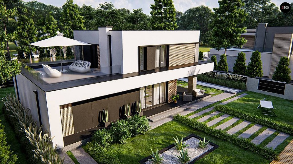 - Компактные участки — дополнительная площадь на крыше компенсирует ограниченность по горизонтали.