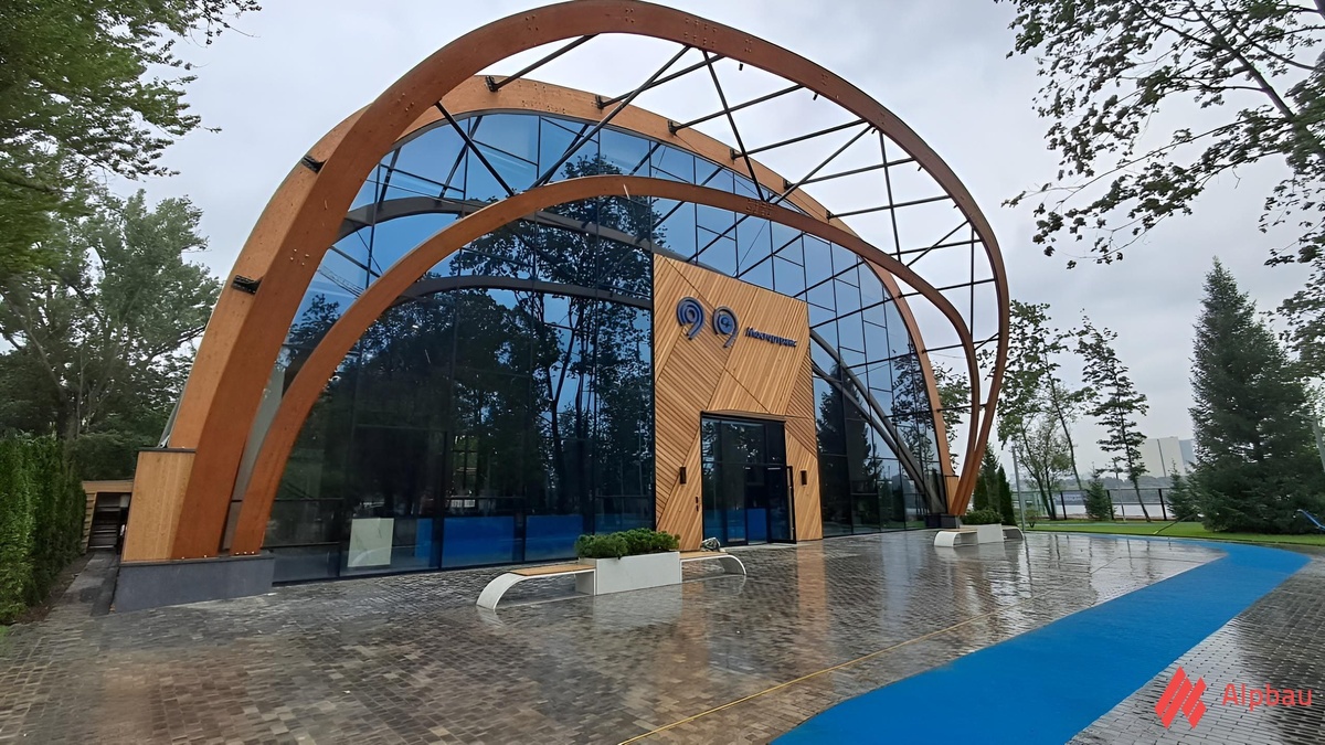 🎾 Новый теннисный корт от Alpbau в Москве В начале этого года мы завершили строительство масштабного павильона 30×46м. Главная особенность проекта - каркас из гнутоклееных балок с длиной пролета более 30 метров. Мы создали уникальную несущую систему из узких деревянных балок, часть из которых параллельна друг другу, а другая расположена по диагонали. Это позволило нам избежать использования громоздких деталей и создать внутри ощущение легкости и воздушности, несмотря на внушительные размеры конструкции. На входе 2 балки образуют декоративные арки, которые задают динамику фасаду здания. Также особое внимание мы уделили декоративной обшивке: панели из лиственницы, соединенные под разными углами, формируют эффектный узор на фасадах и в ложах для гостей. Другие особенности конструкции: • Площадь - 1380 м² • Покрытие - архитектурная ПВХ мембрана • На первом этаже расположен корт, тренажерный зал, раздевалки, ресепшн и технические помещения, на втором - смотровые площадки • Кор