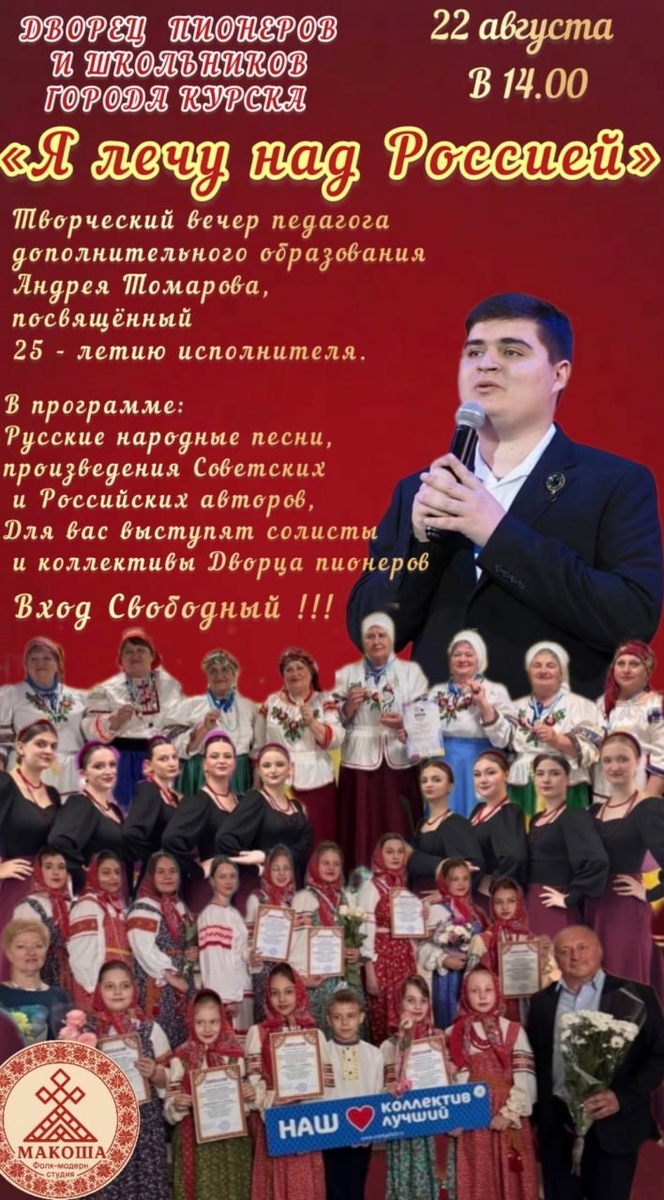22 августа в 14.00, Дворец пионеров и школьников города Курска, состоится творческий вечер педагога дополнительного образования Томарова