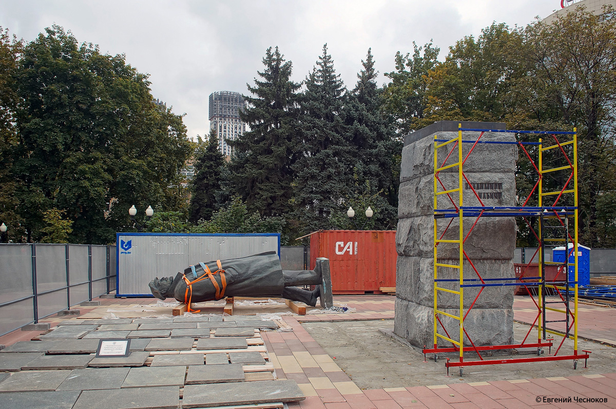 Скульптура в процессе демонтажа для реставрации как бы иллюстрирует события 1918 года: «Ленин поставил ногу на подножку автомобиля. Тогда та женщина нацелилась и выстрелила два раза. Ленин упал, а она побежала» (журнал «Пионер», 1928 № 5).