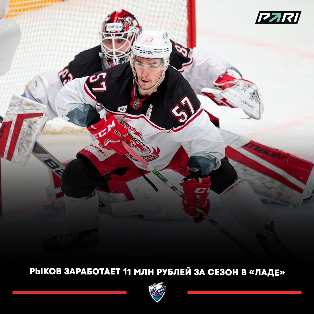 🔥🇷🇺 Егор Рыков заработает 11 млн рублей по контракту с «Ладой». ✍️ Ранее «Лада» объявила о подписании контракта с 28-летним защитником на один год. 🚨 В сезоне-2024/25 на счету Егора Рыкова 50 матчей за «Витязь» и 7 (1+6) очков при показателе полезности «-8».