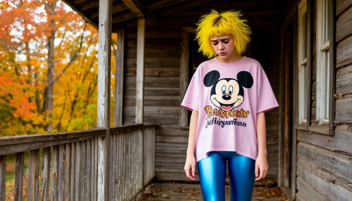 — Ну так... Треники, кеды, «мыльницы», может, халатик какой. Короче, в том, что похуже. А у вас все такое... новое! И брюки странные. И вообще здесь все чужое какое-то. А еще холодно, листья желтые. Разве так бывает летом?