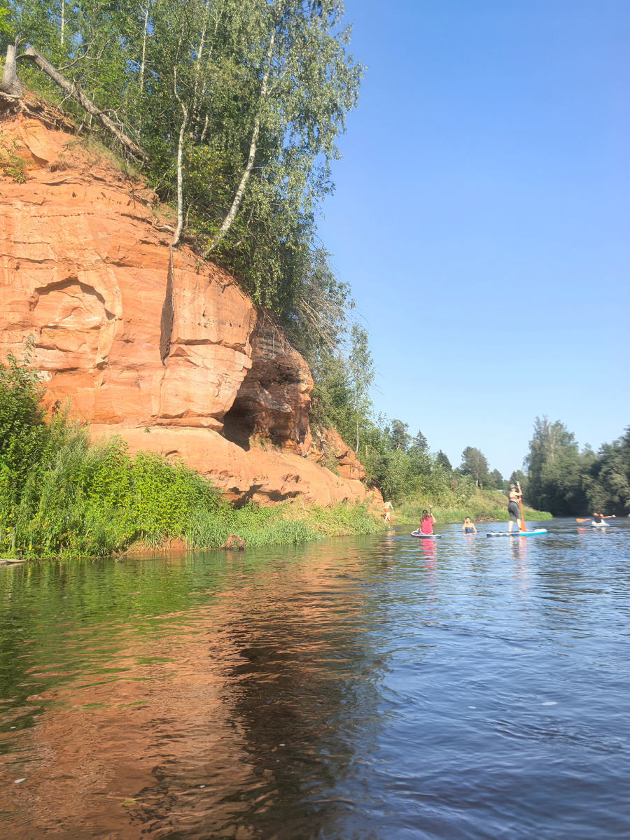 Привет, исследователи Питерских окрестностей! Все, кто видел бирюзовую воду Оредежа, знают и его главное чудо — огненно-красные скалы, обрамляющие реку в районе. Откуда этот фантастический, почти марсианский пейзаж под Петербургом? Разгадываем геологическую тайну! 📍 Где искать эти «пылающие» берега? 🚗 На машине или электричке с Балтийского вокзала до станции Сиверская. Идеальный маршрут - спуститься на сапе от Сиверской ГЭС до Белогорской ГЭС. С воды открываются самые впечатляющие виды. Почему скалы Оредежа — КРАСНЫЕ? Ответ кроется глубоко под землей, миллионы лет назад, и связан с... ЖЕЛЕЗОМ! Эти обрывы сложены из древних песчаников и глин. Они сформировались в Девонский период палеозойской эры — это 360-400 МИЛЛИОНОВ лет назад! Тогда на территории нынешней Ленобласти плескалось теплое море, текли реки, а климат был совсем другим. В этих древних осадках содержалось очень много соединений железа. А вода стала своеобразным художником. За миллионы лет грунтовые воды, просачиваяс