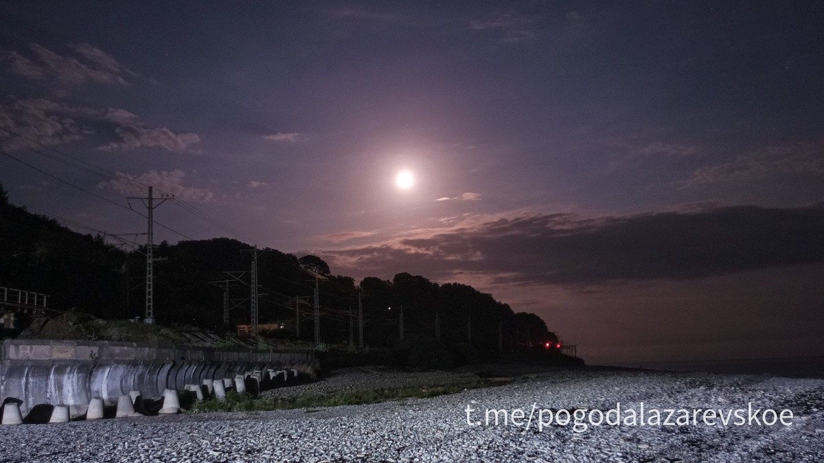 Осетровое полнолуние уже завтра. Сегодня тоже можно наблюдать довольно крупную Луну. Так она выглядит сейчас. Любители ночного купания в море под полной Луной имейте ввиду, что её закат сегодня произойдет в 03:43. #луна@pogodalazarevskoe 🏖 Погода Лазаревское