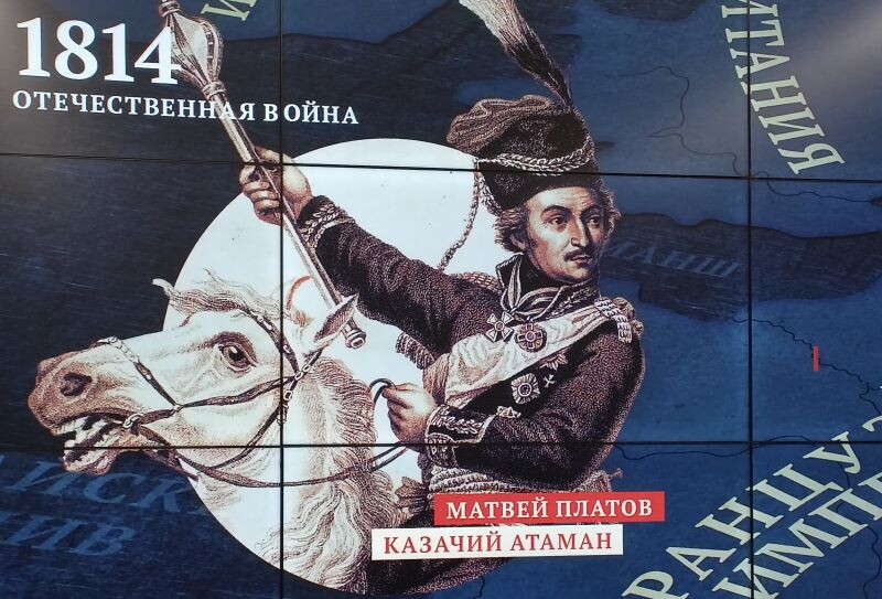 Кстати, о Смутном времени. В ролике, который настойчиво предлагают посмотреть посетителям, говорят, что казаки в Смуту шли с Мининым и Пожарским. Гм… Это, мягко говоря, очень упрощенная картина. Особенно если вспомнить, что казаки были и с Дона, и из Запорожья.