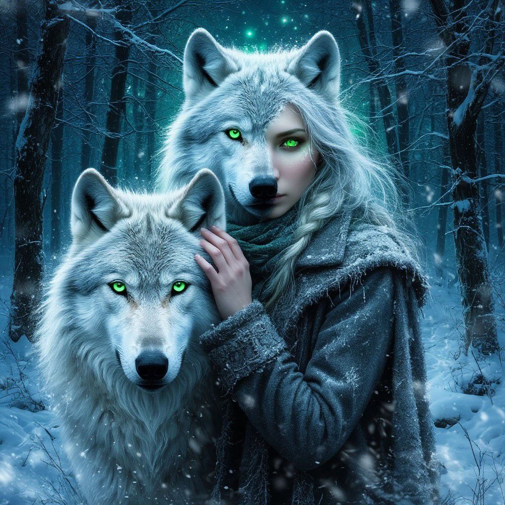 Ледяная Волчица Зима в наших краях — время тихих чудес. Когда озера сковывает крепкий лед, а снег ложится таким пухлым покровом, что даже ветер ступает по нему осторожно, — тогда Она выходит. Охотник Степан увидел Ее впервые на рассвете, когда пробирался к заячьим тропам у Черного озера. Лед уже встал, но был еще тонок, звенел под ногами, как хрустальный колокол. И вдруг — треск. Не предостерегающий, а приглашающий. Из проруби, которой там вчера еще не было, показалась рука. Не синяя от холода, а белая, будто выточенная из того самого льда, что пел под ногами. Девушка вышла из воды, не оставляя следов на снегу. Длинные волосы, серебристые от инея, струились по спине. Глаза — два зеленых осколка весеннего льда. — Ты замерз, — сказала Она, и голос Ее был похож на шорох снежинок по насту. Степан не помнил, чтобы дрожал от холода. Но теперь его зубы стучали, а пальцы побелели. Девушка шагнула ближе. И превратилась. Белая волчица, крупнее любого лесного зверя, стояла перед ним. В п
