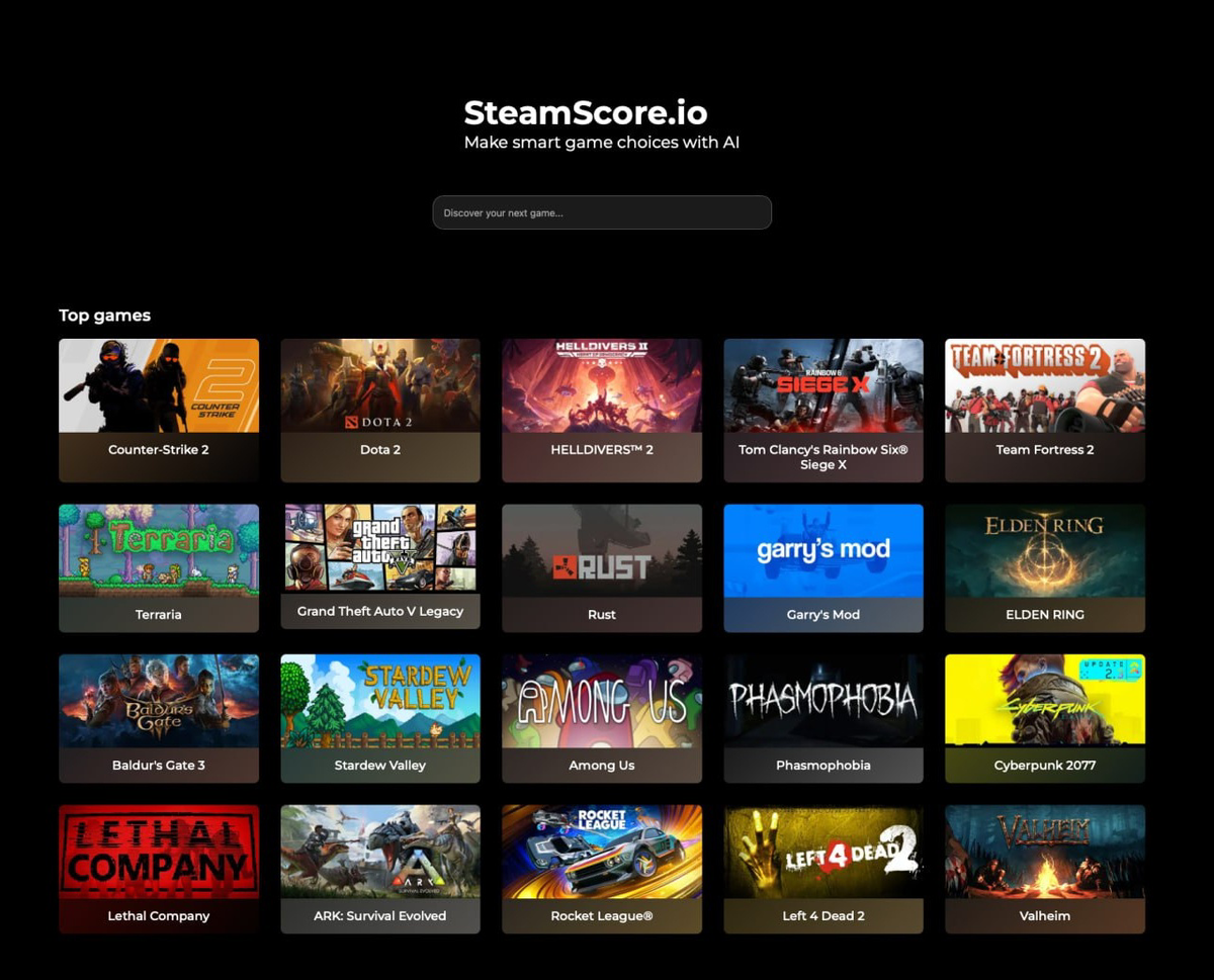 Каждый, кто хоть раз искал игру в Steam, сталкивался с этой проблемой: тонны отзывов, из которых 50% — «игра огонь», 30% — «полный trash», а остальные 20% — эпичные истории про то, как кто-то встретил тут свою вторую половинку (спойлер: это был NPC). SteamScore (steamcore.io) — это бесплатный ИИ-сервис, который анализирует ВСЕ отзывы, вычленяет суть и выдаёт вам короткий, но ёмкий вердикт: стоит ли игра вашего времени и денег? Нейросеть не просто смотрит на общий рейтинг, а анализирует тысячи отзывов, выделяя: ✔ Главные плюсы (например, «захватывающий сюжет» или «удовлетворительный геймплей») ✔ Критические минусы (скажем, «баги, которые ломают квесты» или «скучная грindовая система») ✔ Среднее время прохождения — чтобы вы знали, во сколько вам это влетит по часам. Забили в поиск The Witcher 3? SteamScore не просто скажет «это РПГ», а предложит конкретные тайтлыс похожей атмосферой, механиками или сюжетом. Потому что иногда один эпичный коммент расскажет об игре больше, чем все обзоры