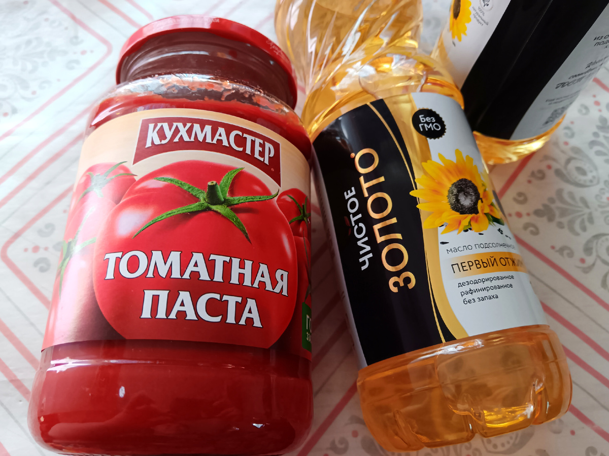 Вот и все покупки. Вроде как всё пригодится, но с другой стороны, не купили бы всё это, так и обошлись бы. Разве что томатная паста для заготовки на зиму обязательно нужна, но перец для лечо пока ещё зреет.