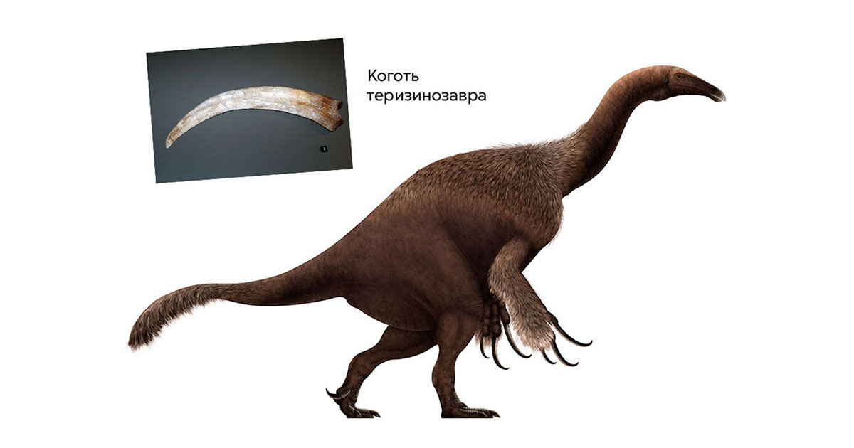 1. Теризинозавр или «ящер-косарь» — динозавр длиной почти 12 м и весом 6 т — имел огромные когти, вырастающие до метра в длину — это самые длинные когти из когда-либонайденных. 72,1 — 66,0 млн лет назад.