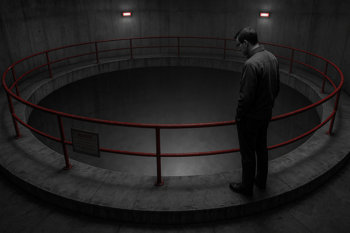 Внутри был бетонный обод, уходящий кругом по периметру здания. Внизу — бездонная яма, полная скелетов в разных стадиях разложения.