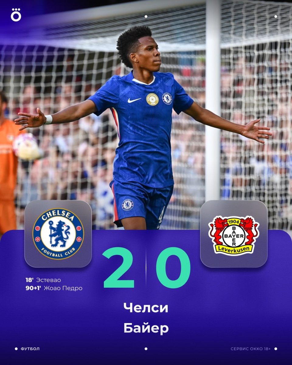 👏 «Челси» обыграл «Байер» в товарке. Первый мяч забил бразильский новичок клуба Эстевао.