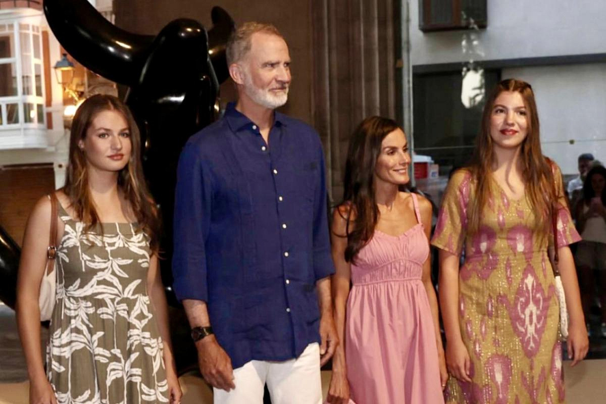 — в синих джинсах и белой блузе, а старшая, принцесса Астурийская Леонор — в летящем платье в греческом стиле. Но