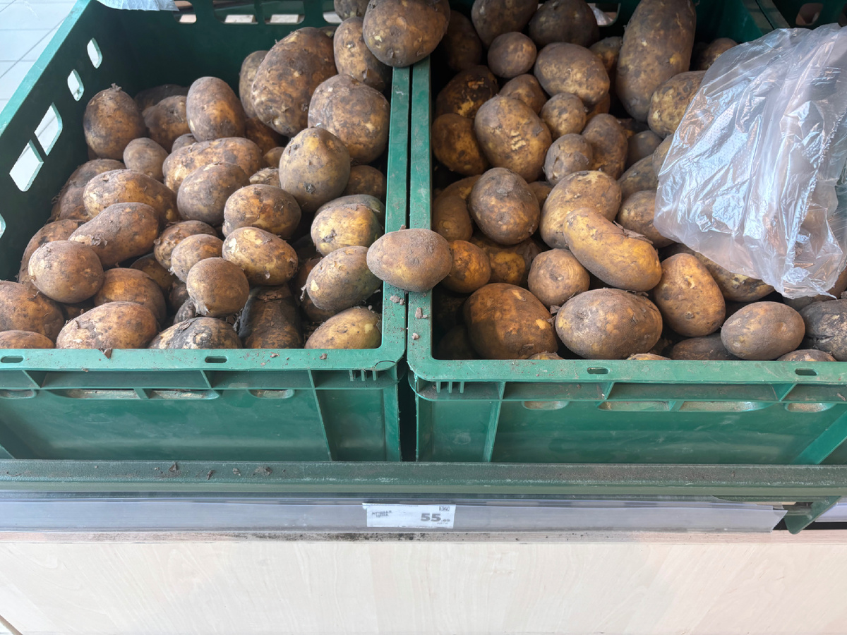 Здравствуйте, мои дорогие! Синопттки сказали, что жары больше не будет. Даже пугают, что температура опустится до +10. Вот +10 совсем не хочется… а +20 было бы очень комфортно. Так не хочется снова холод. Хоть бы осень была, как в том году. И от такой же зимы, как в этом году, я б не отказалась, мне понравилось))) Так, ладно, давайте смотреть Магнит. Как всегда, начинаю с картошки😅 Здесь она по-прежнему в цене. 55 рублей за кг. Морковь, свекла стали стоить весьма приятно. А вот капуста почему-то тоже по 50 рублей. Хотя в других магазинах и капусту по 20-25 рублей встречала, и картошку по 35. Что-то Магнит отстает. Сезонные фрукты. Абрикосы, нектарины, сливы. Всё в пределах 190 рублей. Отлично. Арбузы не стала фотографировать, но они были по 20 рублей, и это просто замечательная на них цена. Бёдра куриные по 169 рублей. Тоже приятно видеть такую стоимость, недорого. Даже целая тушка цыпленка дороже бедер. О, как! Сыра неплохой выбор. Но отдельно хочется показать сыр от фермера Олега