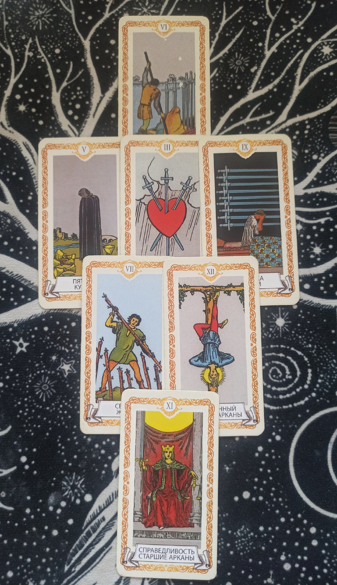 Этот расклад — не просто предсказание, а зеркало внутренних процессов. Он подскажет, где Ваши силы, какие страхи можно отпустить, а где наоборот — стоит собраться и проявить стойкость.