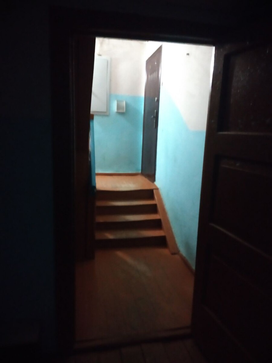 Давайте, я опишу. Значит, у нас первый этаж. Дверь подъезда открывается домофоном, потом надо подняться на три ступеньки, свернуть и пройти небольшой коридорчик.