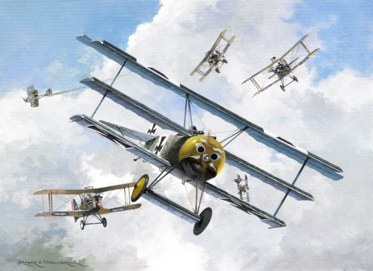Немецкое наступление началось в марте 1918 года. Три немецкие армии (18-я, 2-я и 17-я) сосредоточились на Сомме на стыке французских и британских войск и 21 марта 1918 года перешли в наступление, начав так называемую операцию «Михаэль» – первое из немецких наступлений весны 1918 года. Что касается авиации, то в этом секторе было задействовано 35 немецких истребительных эскадрилий, включая три элитные эскадры, общей штатной численностью 420 самолетов: 144 истребителей Fokker Dr.I и 276 истребителей Albatros D.V и Pfalz D.III.