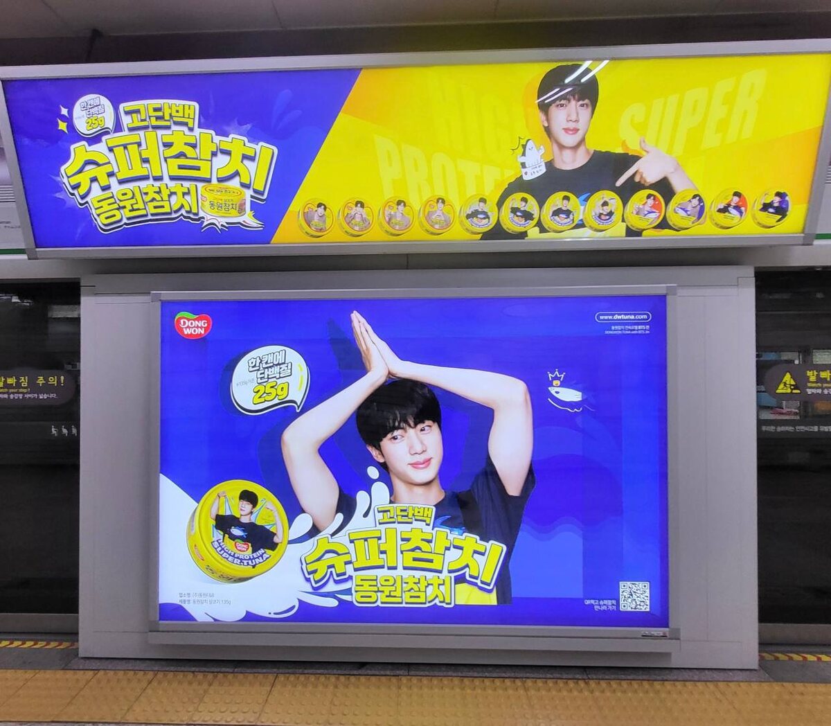 🔮 Dongwon Tuna в X: Высокобелковый супертунец Dongwon Tuna с Джином из BTS! Также доступно в Хондэ и Чамсиле 💛 🐟 На станции Hongik University (направление Синчон) линии 2, вагоны 4-6. 🐟 Линия 2, станция Джамсиль (направление Джамсиль Сэнэ), вагоны 2-3. #JIN @kumihobts