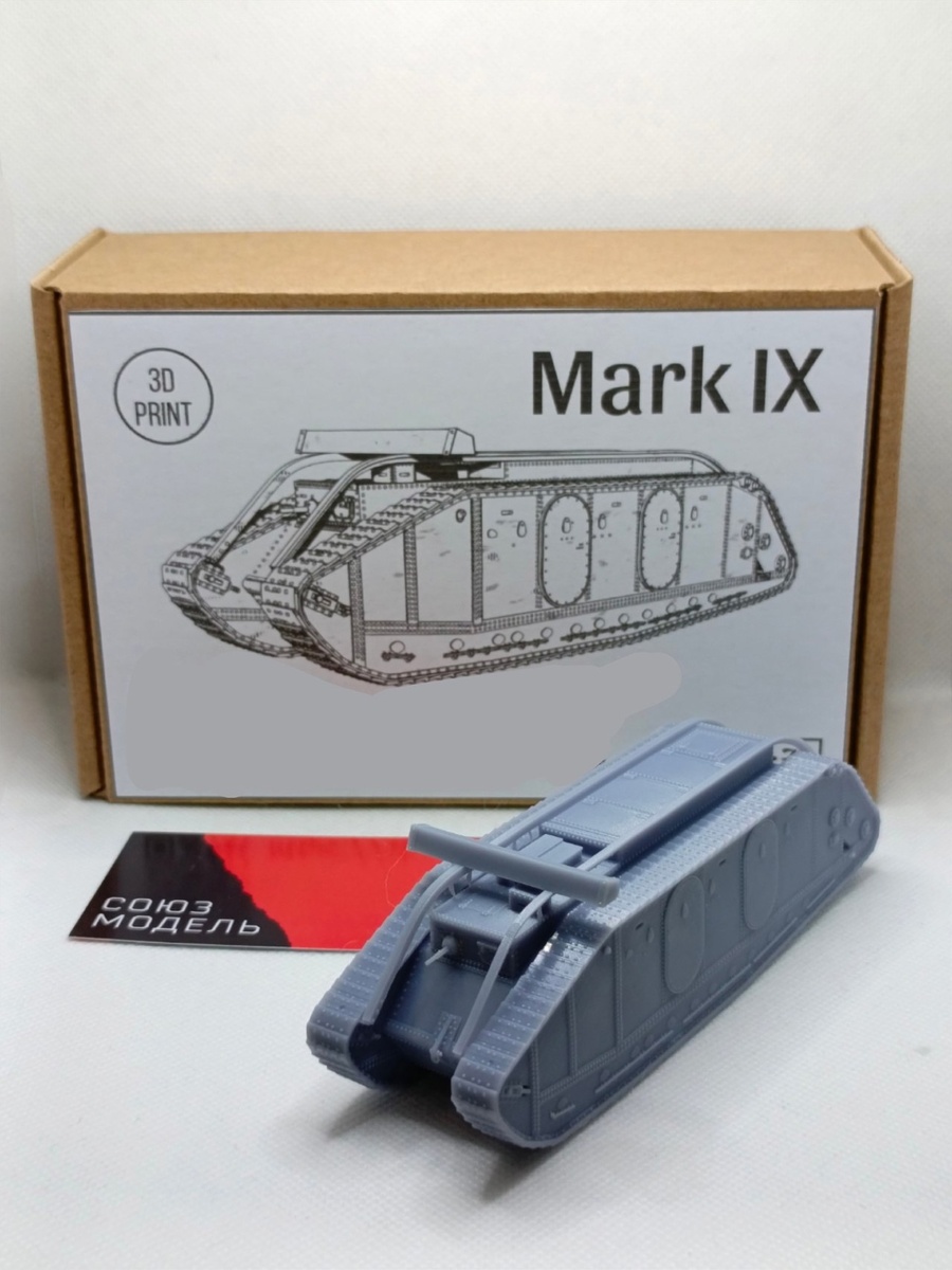 "Союз Модель" из Пензы выпустила на 3D-принтере две модели танков времен Первой мировой войны в масштабе 1/72: Mark V* - британский тяжёлый танк, который был фронтовой модификацией тяжёлого танка Mk V. "Пять со звездочкой" был сделан путём добавления двухметровой секции в разрезанный пополам корпус танков Mk. IV или Mk. V. Вторая модель - тяжёлый танк / бронетранспортёр британской армии Mark IX. Имел пулемётное вооружение и мог перевозить до 30 экипированных пехотинцев.
