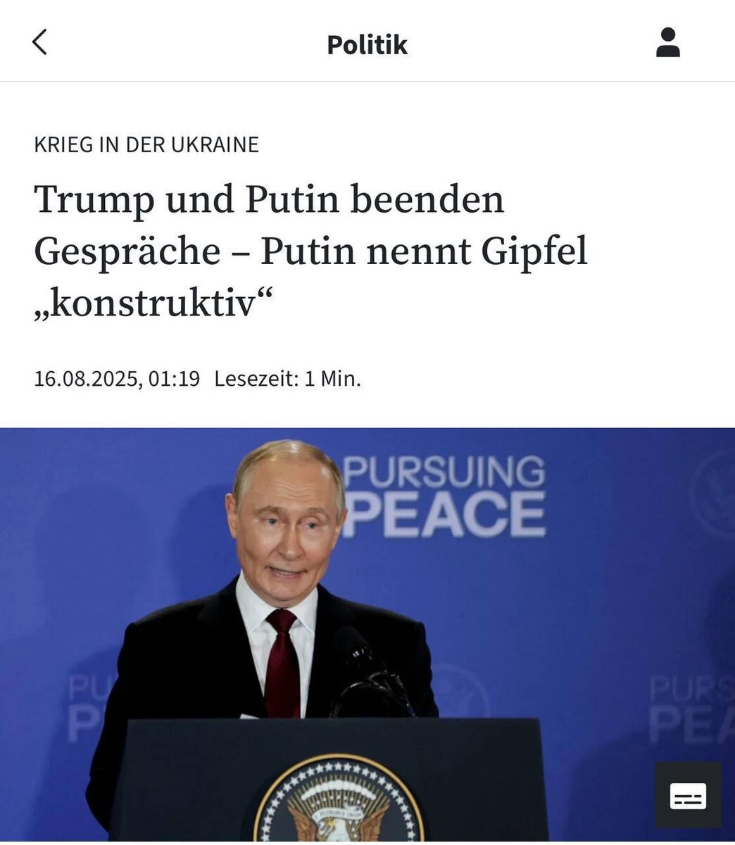 Что пишут зарубежные СМИ об итогах пресс-конференции Путина и Трампа: Трамп и Путин завершили переговоры, Путин назвал саммит «конструктивным» — Frankfurter allgemeine Zeitung. Трамп говорит, что переговоры с Путиным по Украине были «чрезвычайно продуктивными», но деталей по какой-либо сделке нет, — The Guardian. Трамп говорит, что сделки нет, но «прогресс достигнут» после переговоров по Украине с Путиным — ВВС. Трамп и Путин говорят о прогрессе, но никакая сделка не согласована — The Times. Путин и Трамп не смогли достичь мирной сделки по Украине — The Daily Telegraph. 👍 БайБайден. Подписаться
