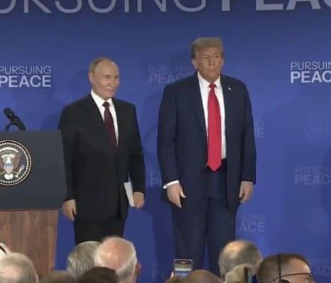 Переговоры прошли в дружественной, конструктивной атмосфере – оба лидера хлопали друг дружку по плечу, говорили приятные слова. Но к общему знаменателю не пришли. Саммит в верхах Россия-США проходил на американской земле, некогда русской, – в штате Аляска – около 4 часов. Столько времени отняли официальные церемонии встреч, формально-дружеские рукопожатия, положенные не только по дипломатическому протоколу добрые слова в адрес друг друга. В какой-то момент Путин пересел из своего роскошного “Ауруса” в обычный лимузин Трампа. Там они и общались, возможно, без чужих ушей. Потом был выход к прессе и ТВ. Но Путин и Трамп отказались отвечать на вопросы журналистов перед переговорами. Интрига, так интрига – ни к чему ее нарушать. Чуть позже начались переговоры в формате “президенты и помощники”. О чем там говорилось – за закрытыми дверями – мы не узнаем, возможно, уже никогда. А когда президенты снова вышли к журналистам, сзади них оказалась надпись на английском. Ее можно перевести и как “п