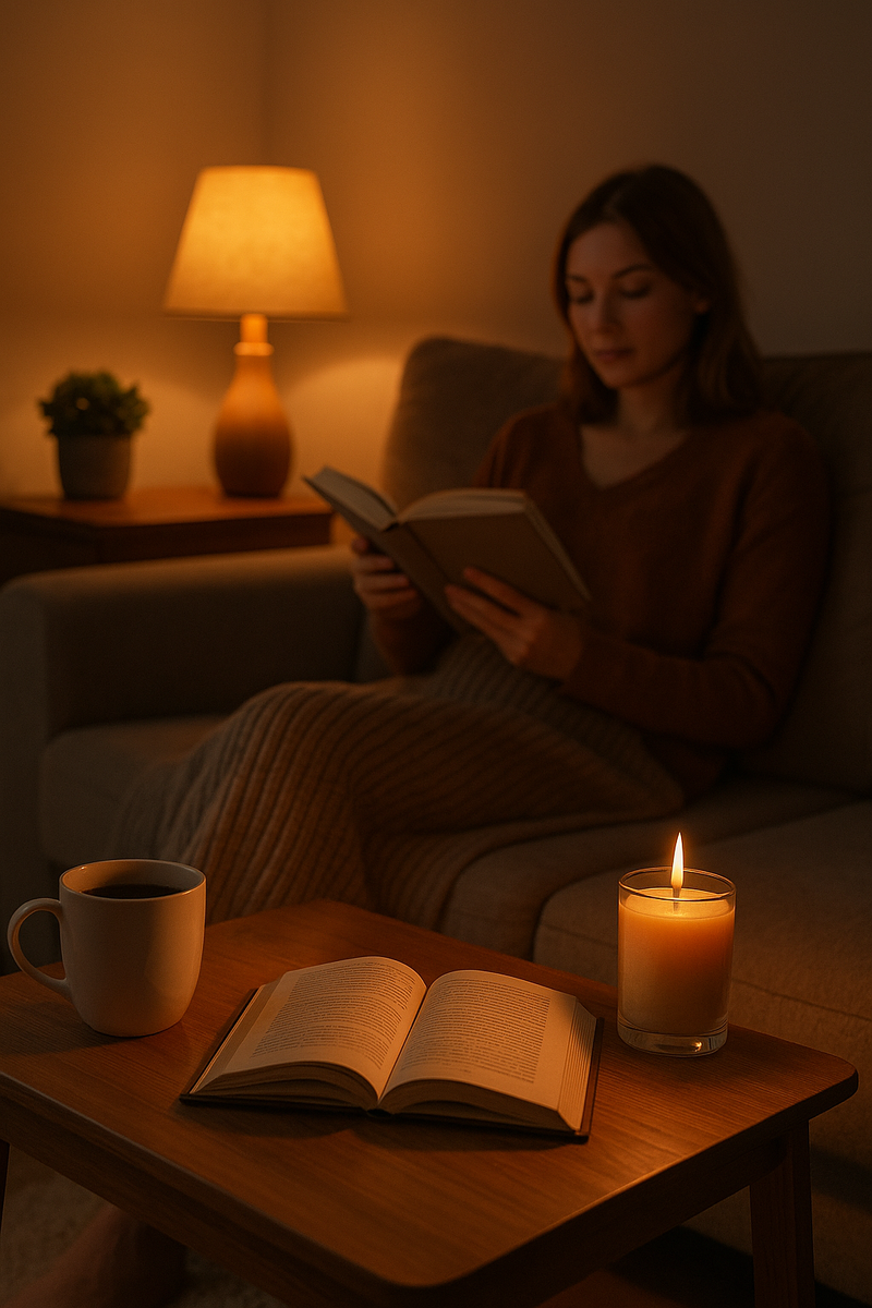 👉 Маленький секрет: попробуйте вместо телефона положить рядом с диваном книгу или блокнот. Рука сама потянется не к экрану, а к чему-то полезному. Правильный свет — половина атмосферы. Замените яркий потолочный свет на: Эффект: тело быстрее понимает, что наступил вечер, и начинает готовиться ко сну. Запах напрямую влияет на наше настроение. Для расслабления подходят: 👉 Можно использовать аромалампу, диффузор или просто заварить чай с травами. Выберите 1–2 привычки, которые станут вашими вечерними «якорями». Например: Эти маленькие привычки созд
