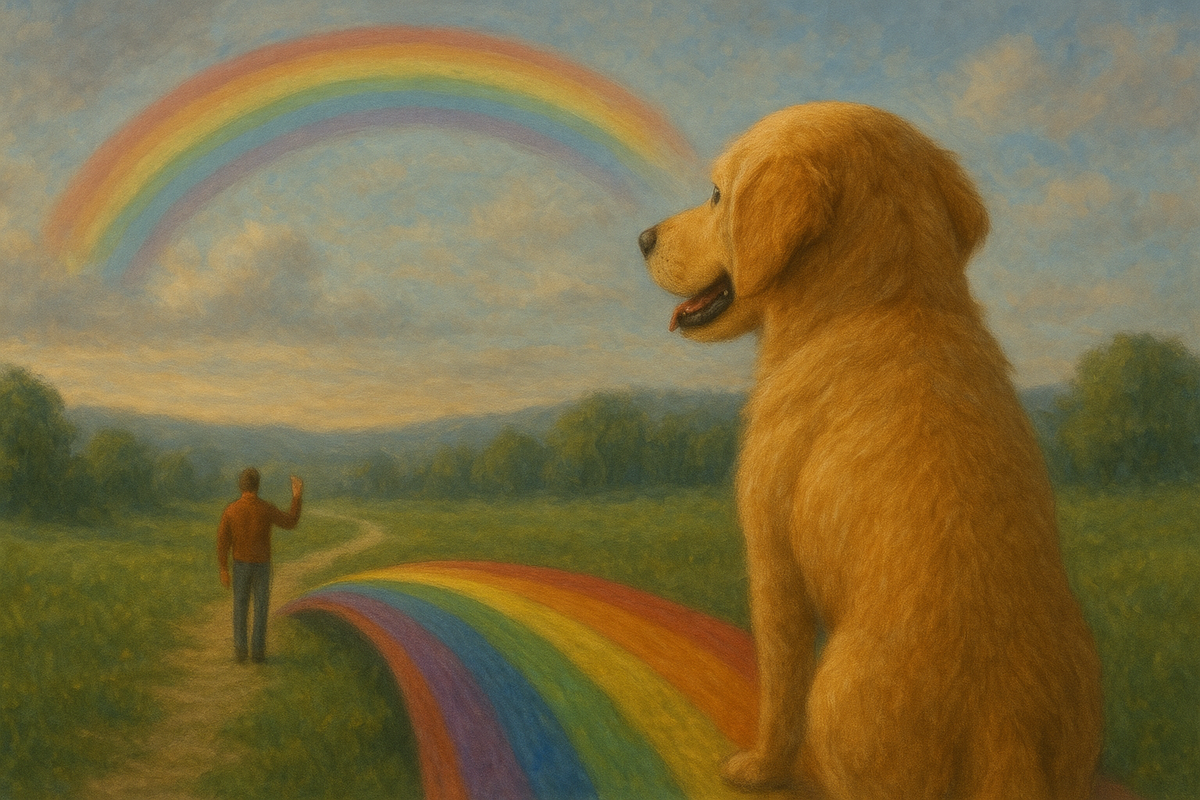 Куда уходят собаки после смерти? Многие считаю, что они ждут нас на радуге. А ты, собаковод, знаешь, кто придумал «собачий рай» и зачем? Хочу рассказать тебе, что стоит за самой трогательной легендой о животных. У людей появился очень тёплый образ «Радужного моста» — места, где любимые животные здоровыми и счастливыми ждут нас, чтобы потом вместе перейти «на ту сторону». Этот образ родился не из религиозного канона, а из популярного текста-утешения второй половины ХХ века и быстро стал языком, на котором говорят о прощании с питомцами. В 1959 году шотландка Эдна Клайн-Рекхи переживала смерть своего лабрадора по кличке Мейджор и написала короткий прозаический текст «Rainbow Bridge» — «Радужный мост». Копии она печатала на машинке и дарила друзьям; имени на листах не было, и текст начал жить отдельной жизнью. Спустя десятилетия «Радужный мост» всплыл в США и разошёлся по приютам, ветклиникам, печатался в колонке «Dear Abby» (1994) и стал интернет-мемориалом, хотя автор долго оставалась н