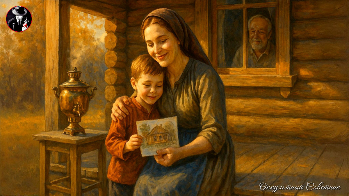 Она взяла рисунок — криво, по-детски, но с любовью был изображён их дом и вся семья.