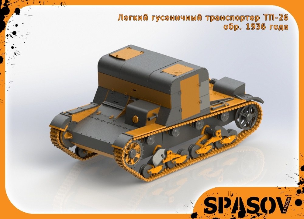 SpAsov из Георгиевска Ставропольского края выпускает на 3D-принтере модель легкого гусеничного транспортера ТП-26 обр. 1936 года в масштабе 1/35: Лёгкий гусеничный транспортёр ТП-26 обр. 1936 года (каталожный номер 3570)