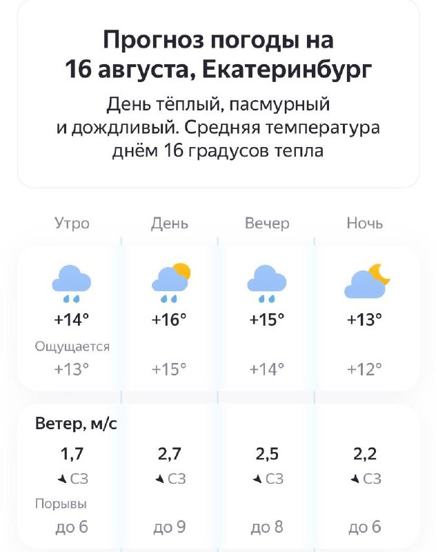 Прогноз погоды на День города в Екатеринбурге. Остальные варианты примерно аналогичны.